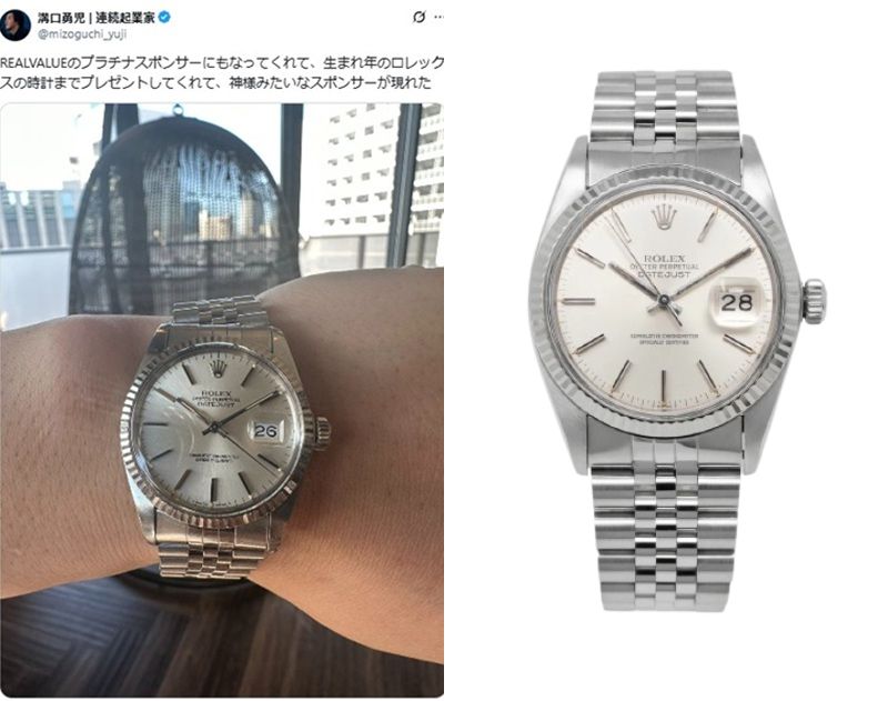 連続起業家の溝口勇児さん愛用の腕時計は1984年製のロレックス デイトジャスト 16014です。