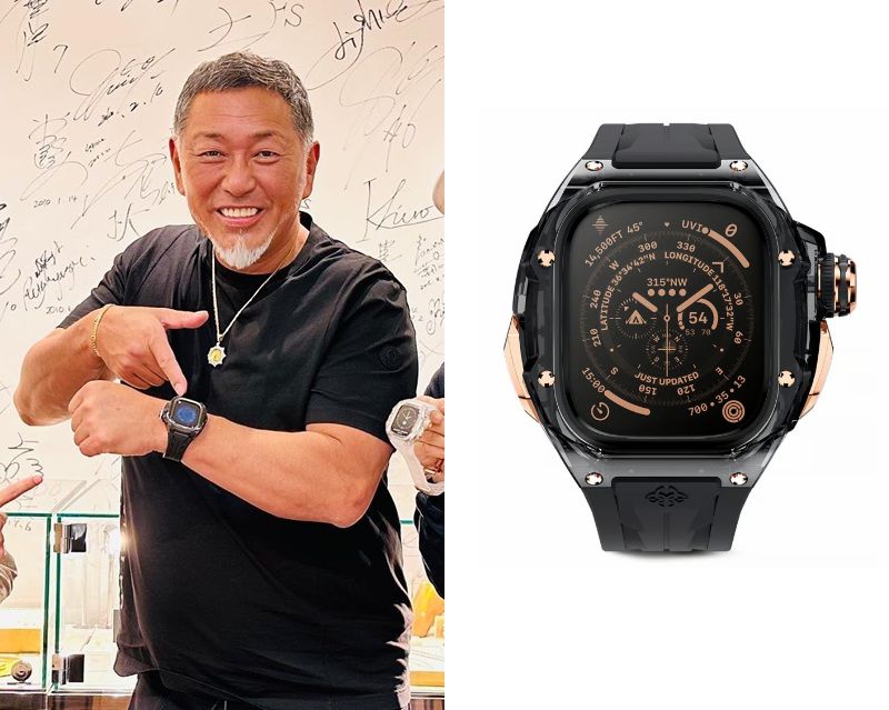元プロ野球選手の清原和博さん愛用の腕時計はアップルウォッチ ウルトラでケースはゴールデンコンセプト CRYSTAL EDITION RSTR49 SMOKEY BLACK ROSEです。