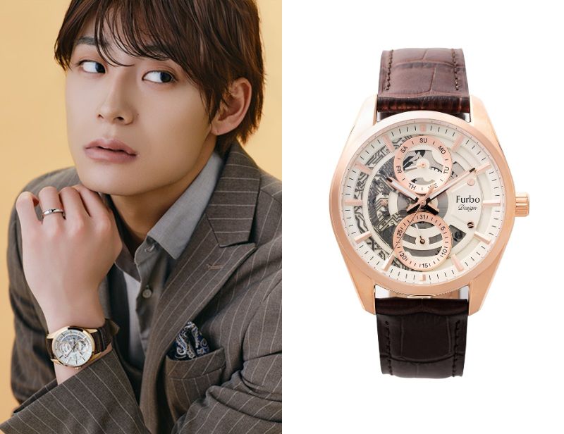 俳優の髙松アロハさんが着用している腕時計はフルボ デザイン Ref. NF05W-PGBRです。